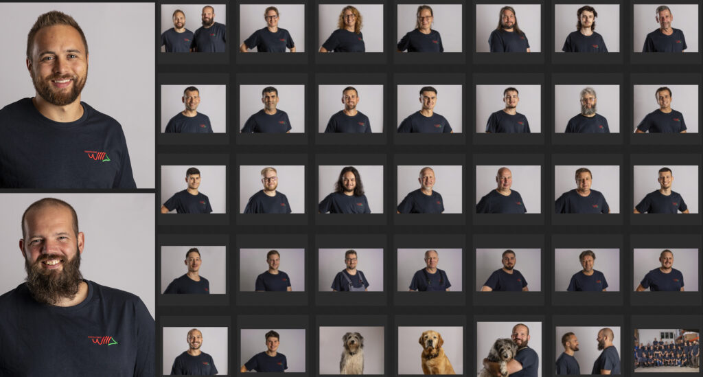 Ein zentraler Spot jeder Firmenreportage sind die Menschen! Sie zusammen – von der Leitung bis zur Hausmeisterei – erschaffen jeden Tag die Firma. Sie prägen auch das Gesicht deiner Firma. Und so, nicht weiter verwunderlich, achte ich besonders bei den Portraits der Mitarbeiter*innen darauf, dass sie so fotografiert sind, dass sie zum Gesamtbild passen – als Studioportraits oder am Arbeitsplatz. Selbstverständlich arbeite ich mit mobiler Lichtanlage, um immer die beste Ausleuchtung zu haben und Akzente setzen zu können.